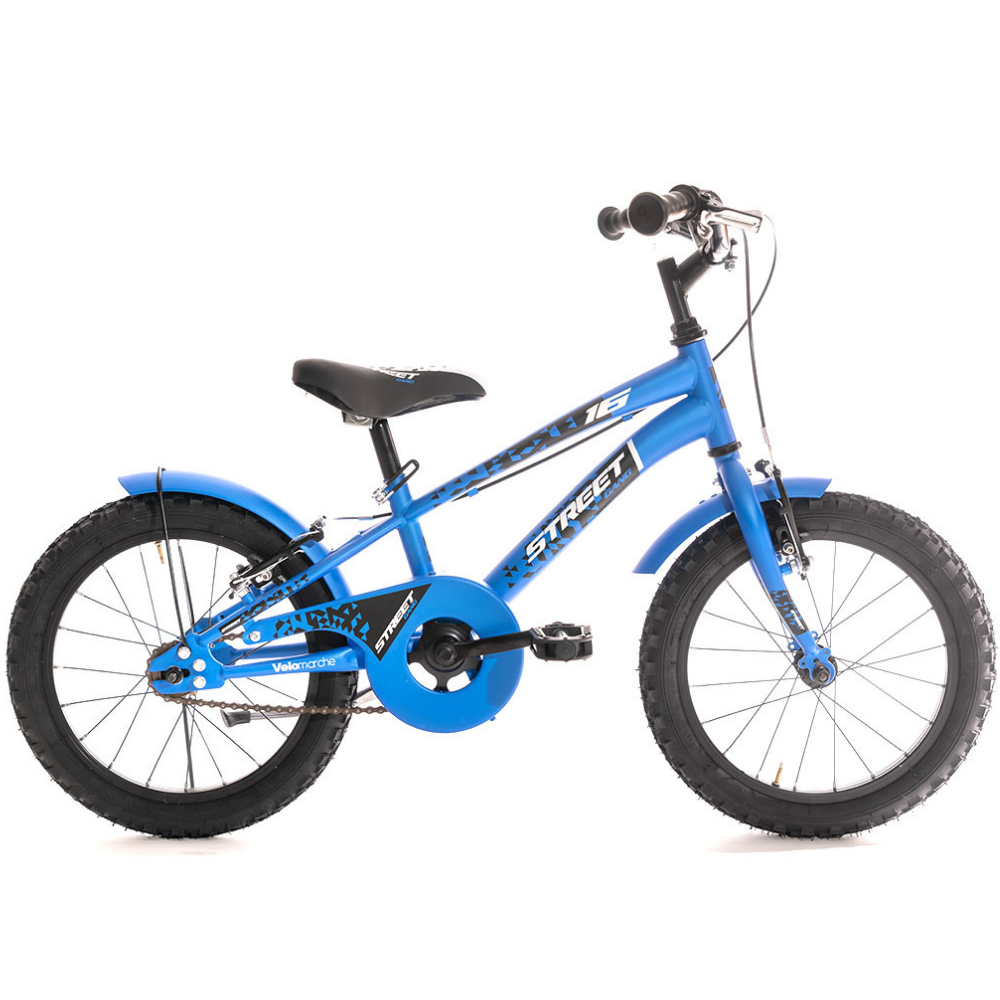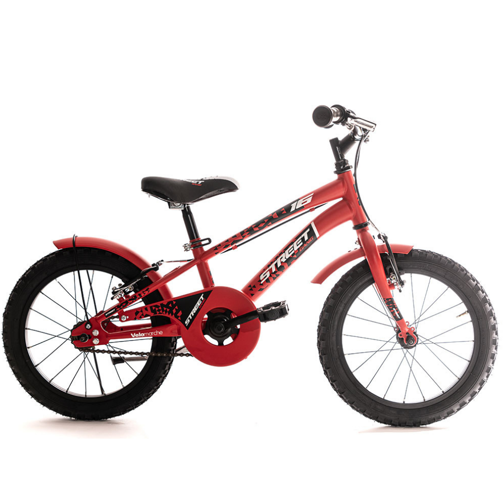 La Street Gang 16″ 1V di Velomarche è la Mountain Bike Made in Italy ideale per i tuoi bambini, con un design accattivante e disponibile in tre colori: nero, rosso e blu. Il telaio in acciaio e le ruote da 16″ in alluminio offrono stabilità e facilità di manovra, rendendola la bicicletta perfetta per i più piccoli.