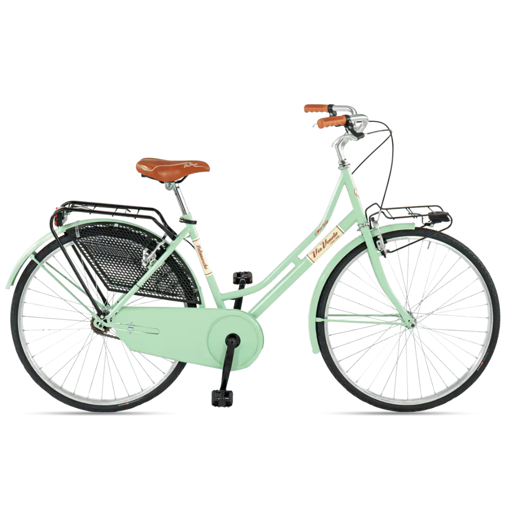 La Sabrina 26″ 1V di Via Veneto è una bicicletta da donna Made in Italy in stile olandese. Single speed e con telaio in acciaio, è perfetta per le donne che desiderano rivivere il fascino e la leggerezza degli anni ‘6o durante i propri spostamenti quotidiani in città.